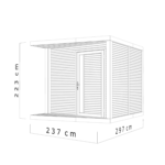 - Dimensions optimales : 237 cm (L) x 297 cm (l) x 268 cm (H)