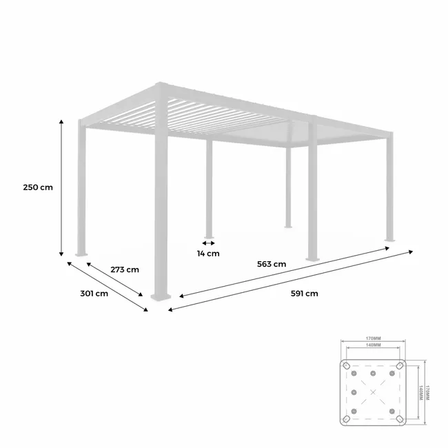 Construite en aluminium de haute qualité et protégée par un thermolaquage gris anthracite, la pergola TRIOMPHE est ultra-résistante aux intempéries, aux UV et à la corrosion. Son style épuré et élégant s’adapte aussi bien aux terrasses modernes qu’aux jardins plus classiques.