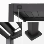 La pergola TRIOMPHE est réalisée en aluminium thermolaqué gris anthracite, garantissant résistance aux UV, à la corrosion et aux intempéries. Son design moderne s’adapte parfaitement à tous types d’aménagements extérieurs, du plus classique au plus contemporain.