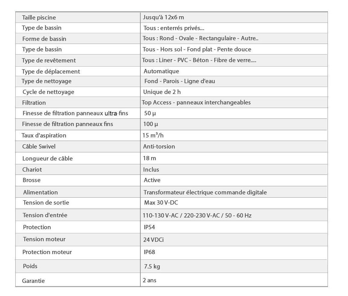 Idéal pour les piscines jusqu’à 12 m de long, il vous procurera un nettoyage minutieux du fond, des parois et de la ligne d’eau.