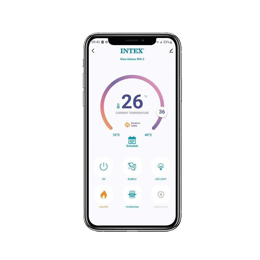 Grâce à sa tablette tactile waterproof, contrôlez facilement toutes les fonctions du spa : température de l’eau, activation des bulles, filtration, gonflage et dégonflage. Et pour encore plus de confort, l’application Wi-Fi vous permet de piloter votre PureSpa à distance.
